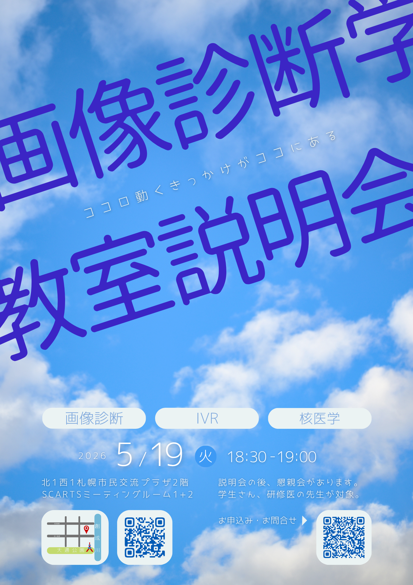 放射線診断科(画像診断やIVR、核医学治療)に少しでも興味がある研修医・医学生の皆さまのご参加をお待ちしております。